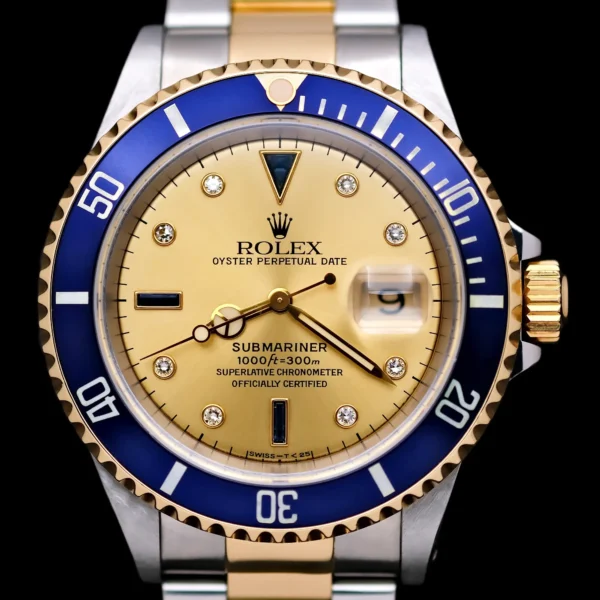 Rolex Submariner “Serti Dial” 40 Model Ref-16613 Yellow Gold & Steel 2000 Box & Papers