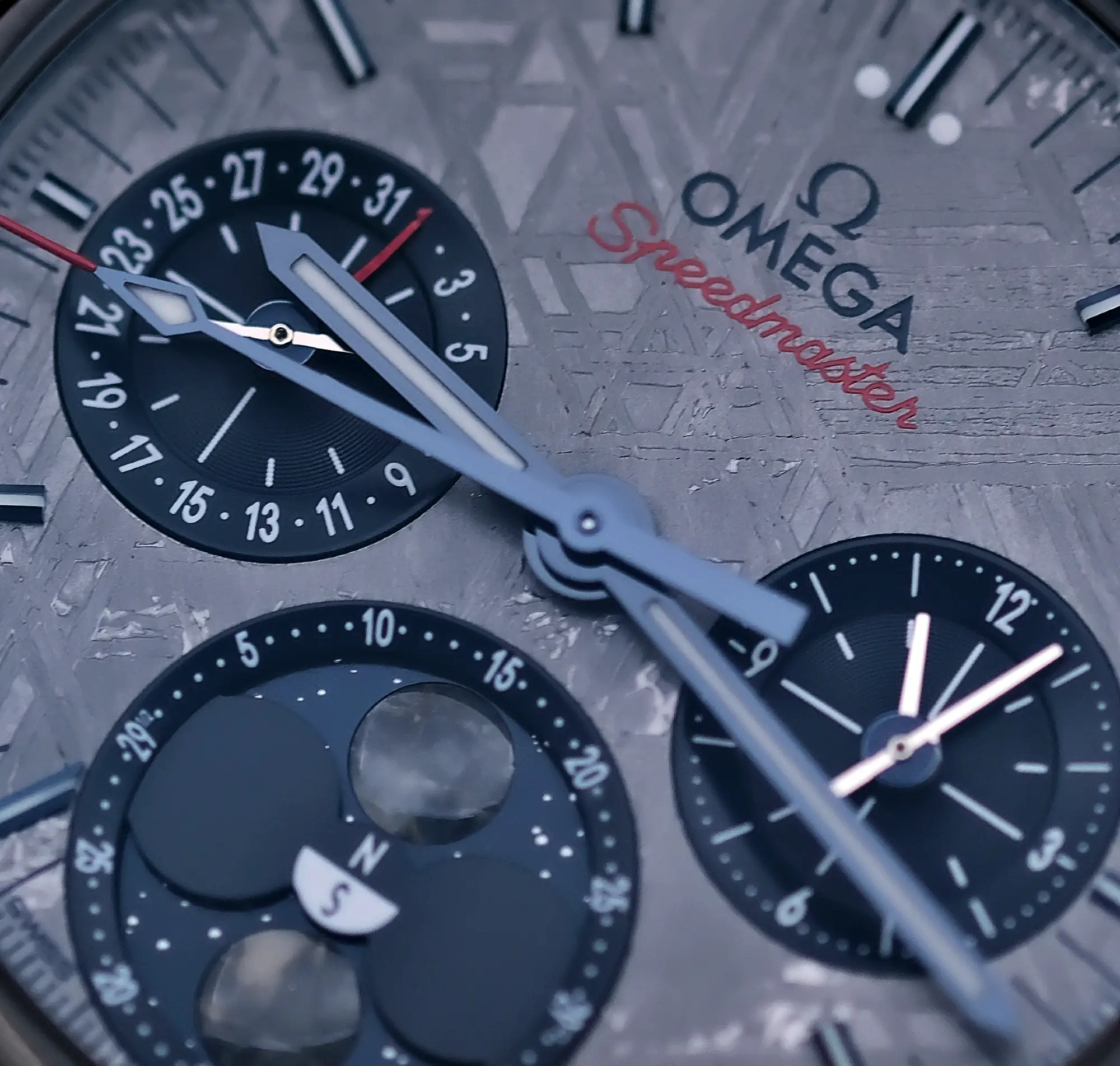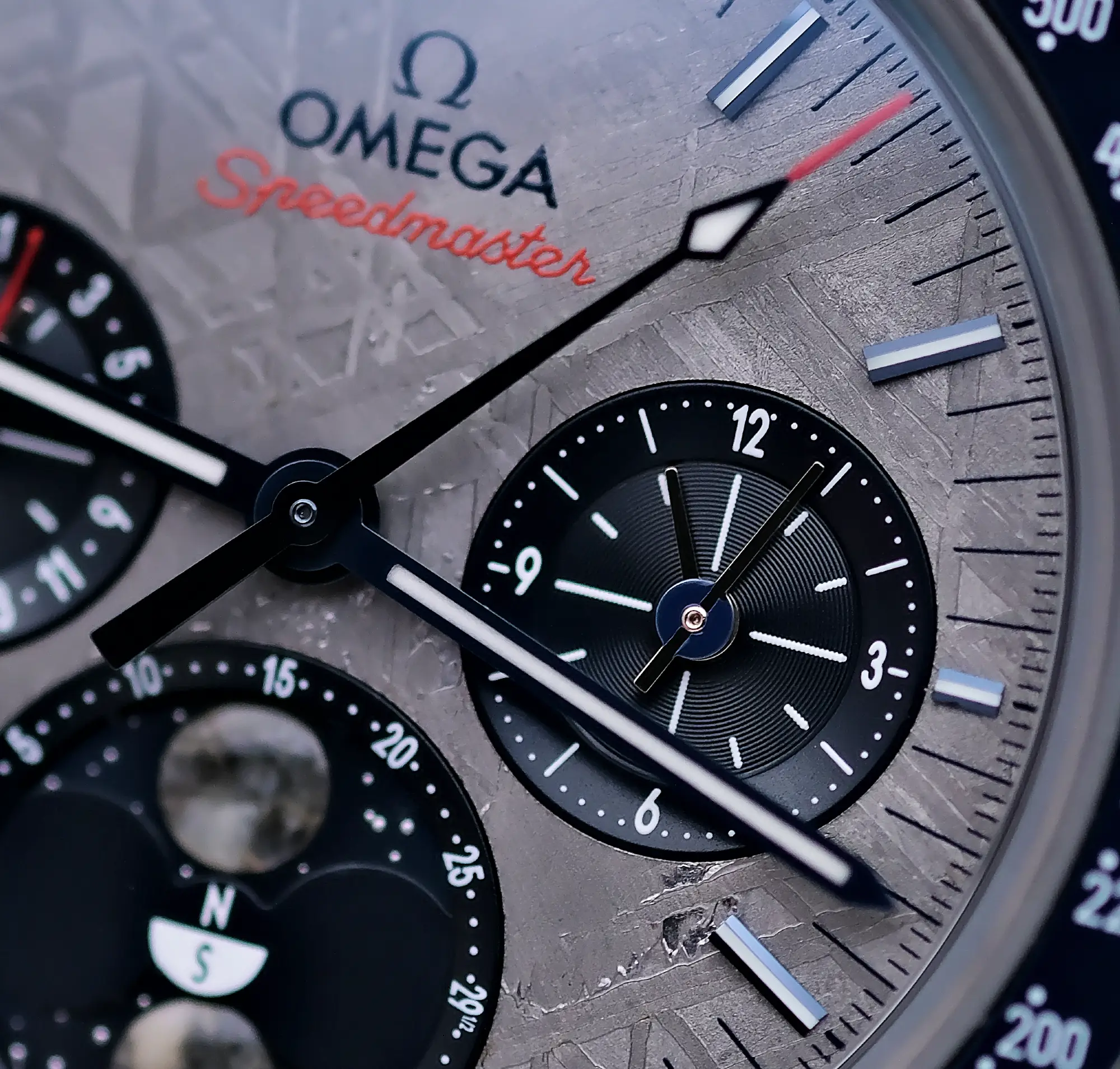 | BRAND / MODEL | Omega Speedmaster Moonphase “Meteorite” Dial 43 |